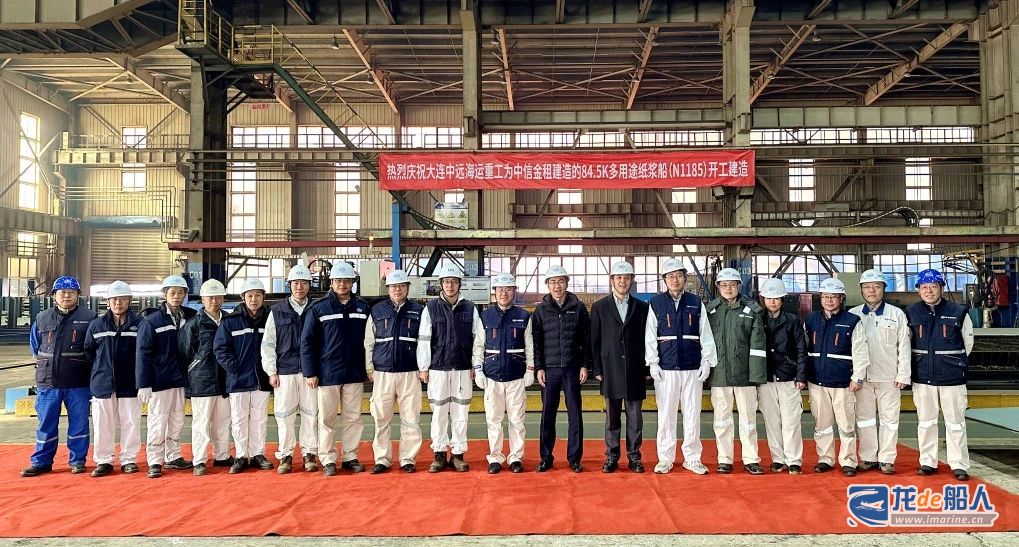 同日,大连中远海运重工建造的第四艘84500吨多用途纸浆船N1185点火开工。