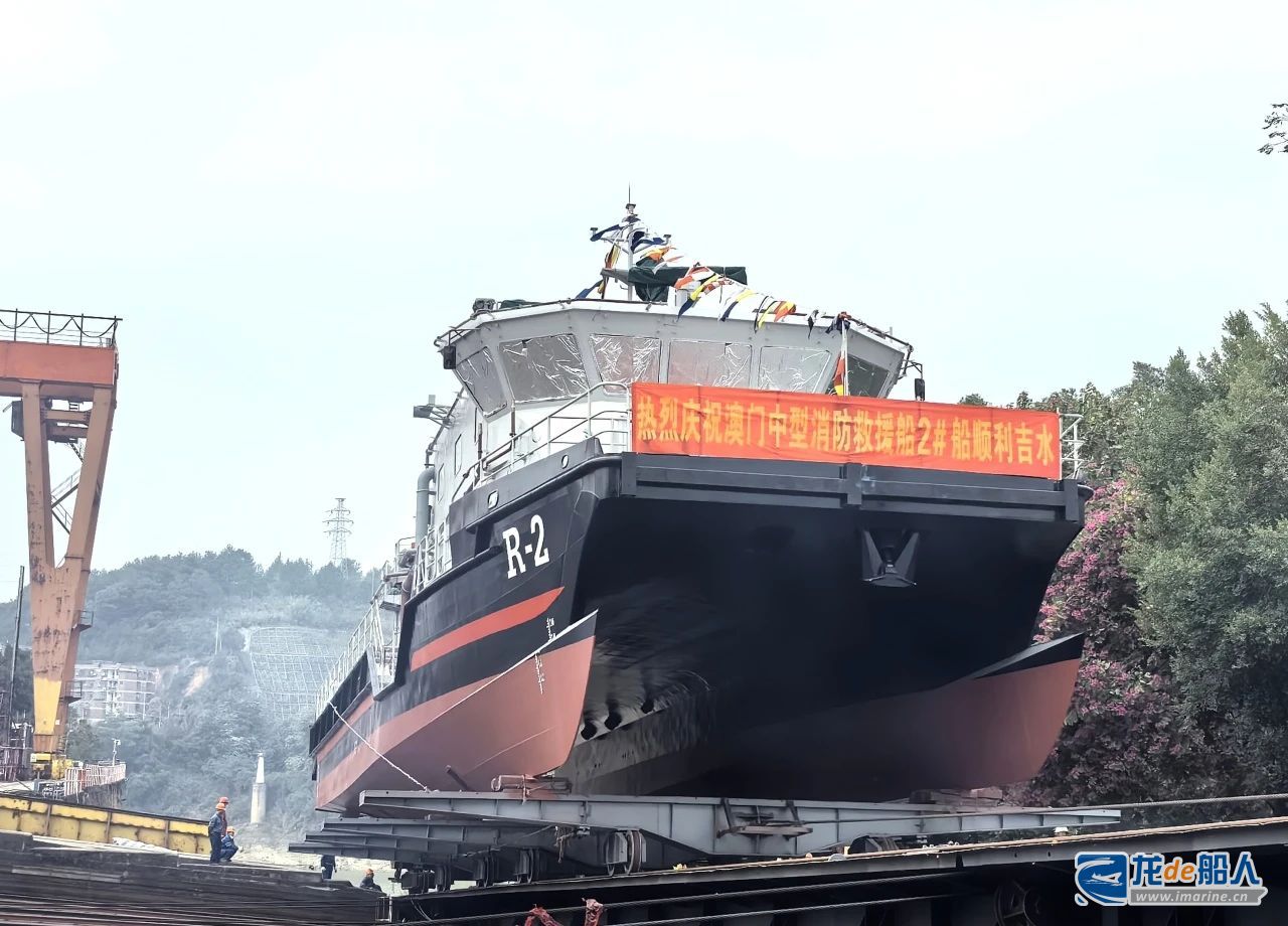 12月6日,在澳门回归25周年之际,由中国船舶集团旗下广州公司承接、第七〇一所所属武汉船舶设计研究院设计、广西公司所属中船桂江造船有限公司建造的澳门海关中型消防救援船“R-2”号顺利下水。这是澳门特别行政区政府为应对澳门水域及近岸地区突发火险而定制的消防救援船舶。也是自2003年以来,广州公司为澳门特别行政区政府建造的第10艘公务船。