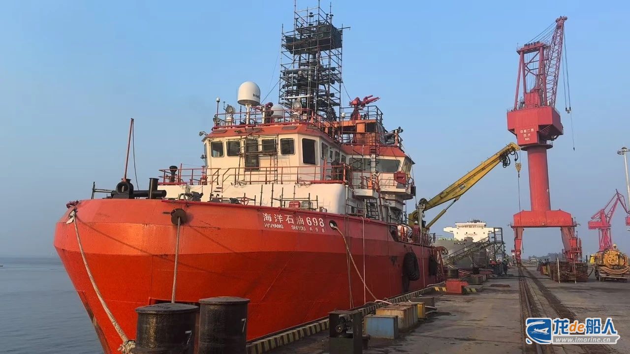 “海洋石油698轮修理项目中,项目组主要开展主机、副机、鲨鱼钳等修理,以及尾甲板垫木更换、主推及侧推修理等工程。目前已完成60%的任务量,将于2025年1月中旬完工交付。