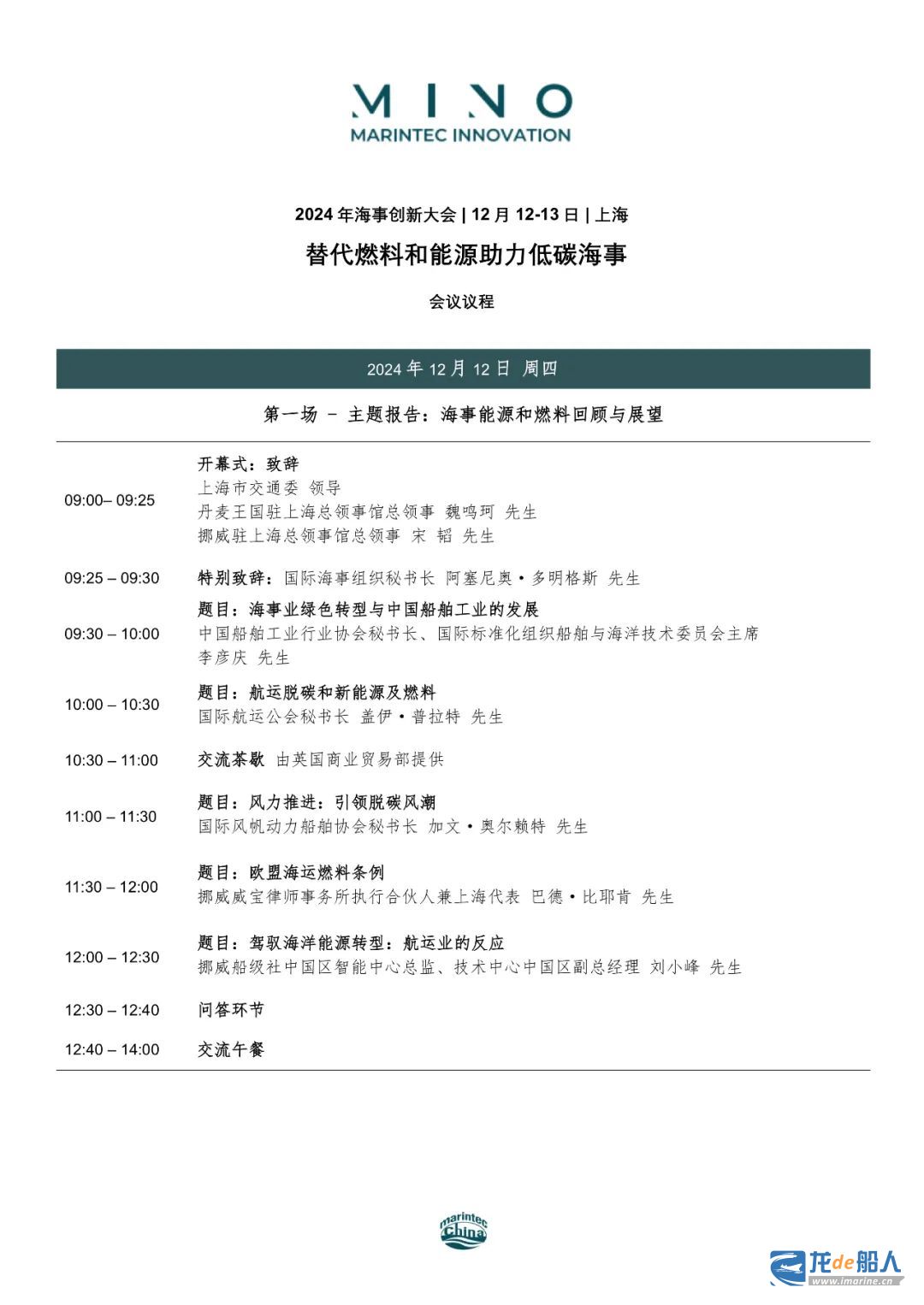 本届海事创新大会以”替代燃料和能源助力低碳海事”为主题,将设置“海事能源和燃料的回顾和展望”、“航行效率”和“产业链及技术支持”三场论坛。具体日程安排如下: