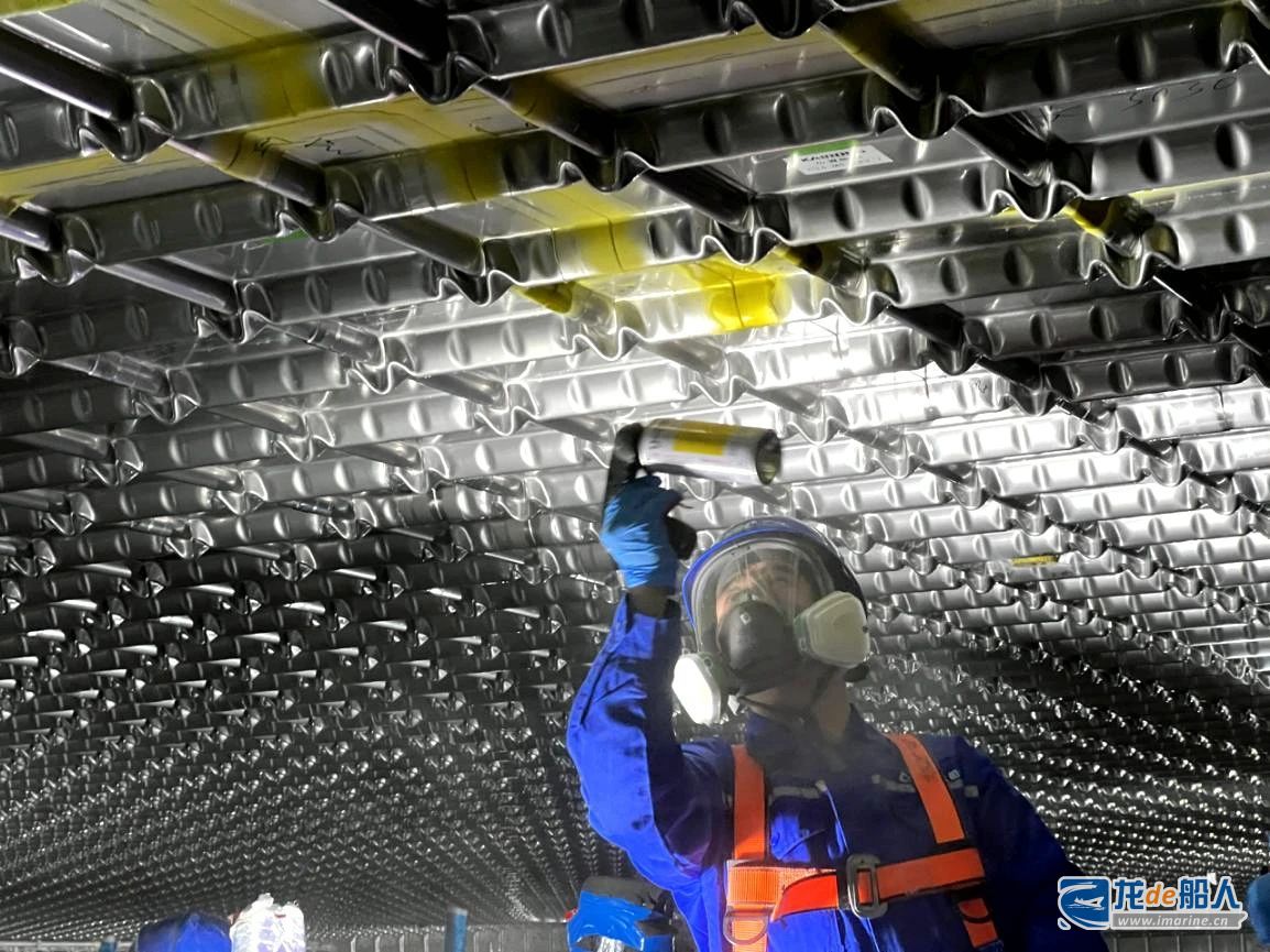 氨气试验是Mark Ⅲ型LNG运输船货物围护系统建造过程中最关键的一环。此次试验施工进度紧、难度大,LNG运行部建造团队提前部署、精心策划,积极组织技术人员与检测单位多次召开专项方案讨论会、技术交底会,对氨气试验前各项条件反复确认,确保安全措施落实到位。试验历时6天,全舱10500米自动焊焊缝、边界区域A3焊缝、2253个角部件焊缝、2977米手工焊焊缝顺利完成氨气检测,试验结果优异。