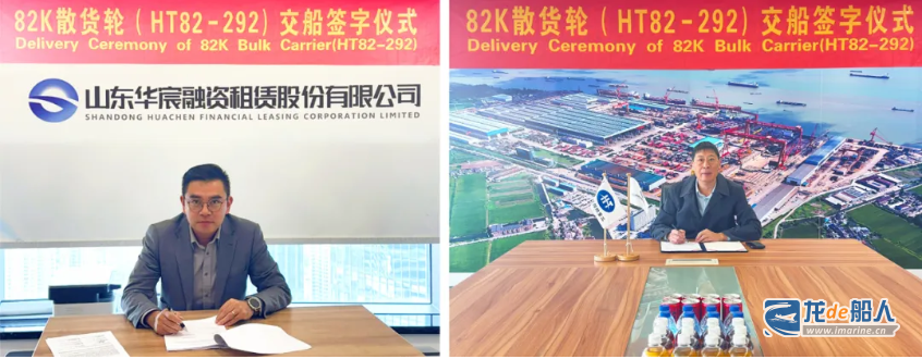 12月9日,江苏韩通集团为华宸租赁打造的第三艘82000吨散货船“山东鑫福”顺利签字交付。