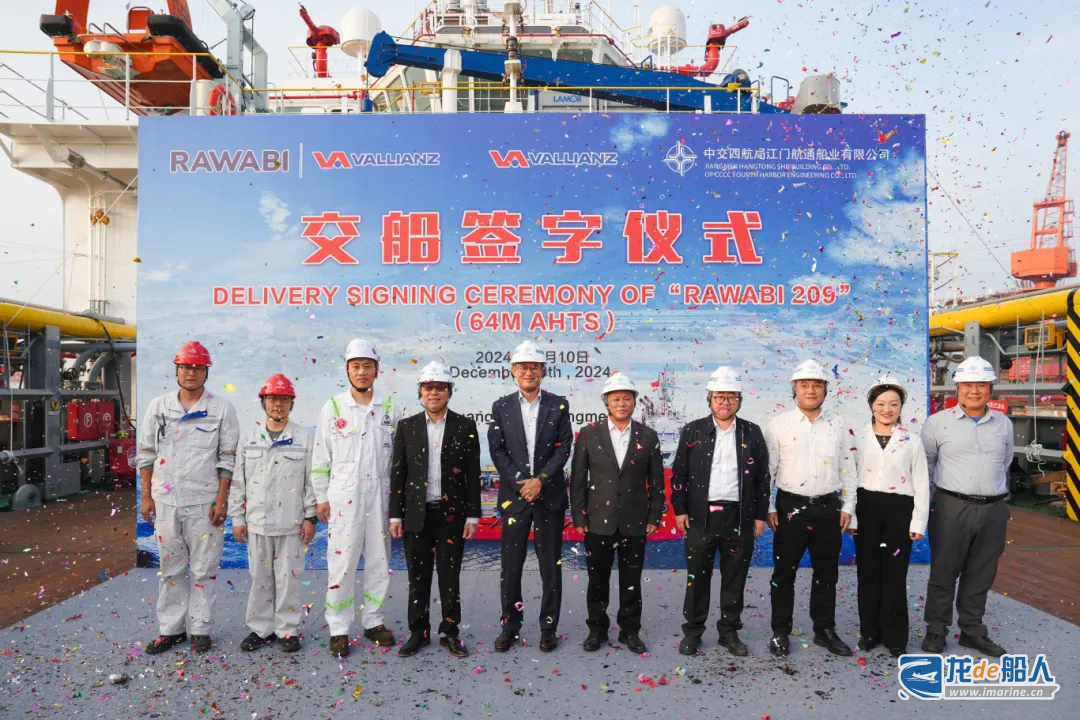 12月10日,中交四航局江门航通船业有限公司举行64米拖带起锚船“RAWABI 209”交付仪式。