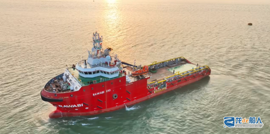 “RAWABI 210”轮,全长64米,型宽16米,型深6米,设计吃水3.5米,设计航速10节,入级ABS美国船级社,满足无限航区要求,可满足抛锚及拖带、离岸支援、离岸供应、对外消防和溢油回收等多项用途。