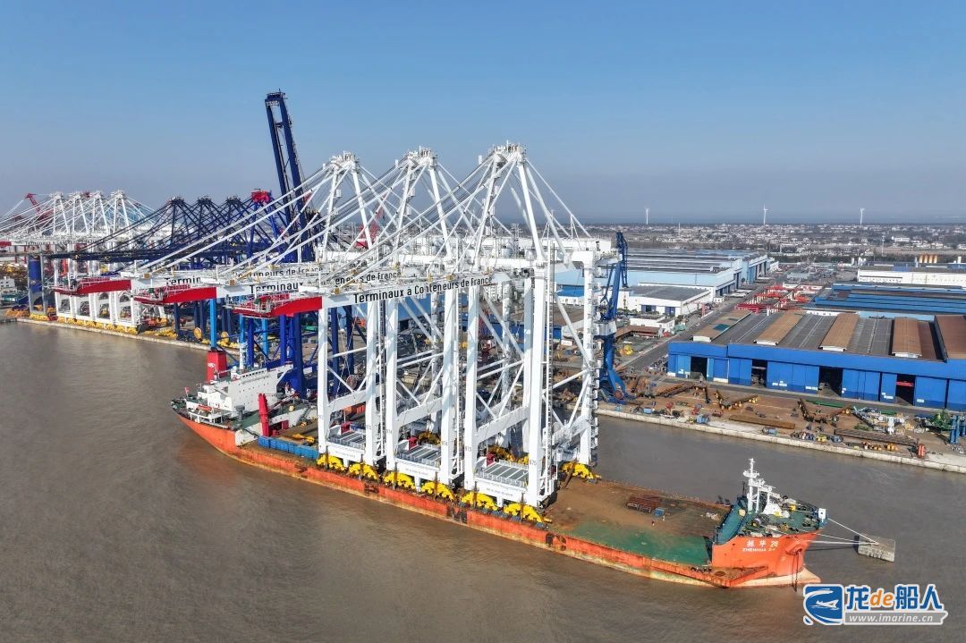 12月16日下午,“振华24”轮装载着法国项目3台岸桥从振华重工长兴分公司4号码头扬帆起航,前往用户码头。