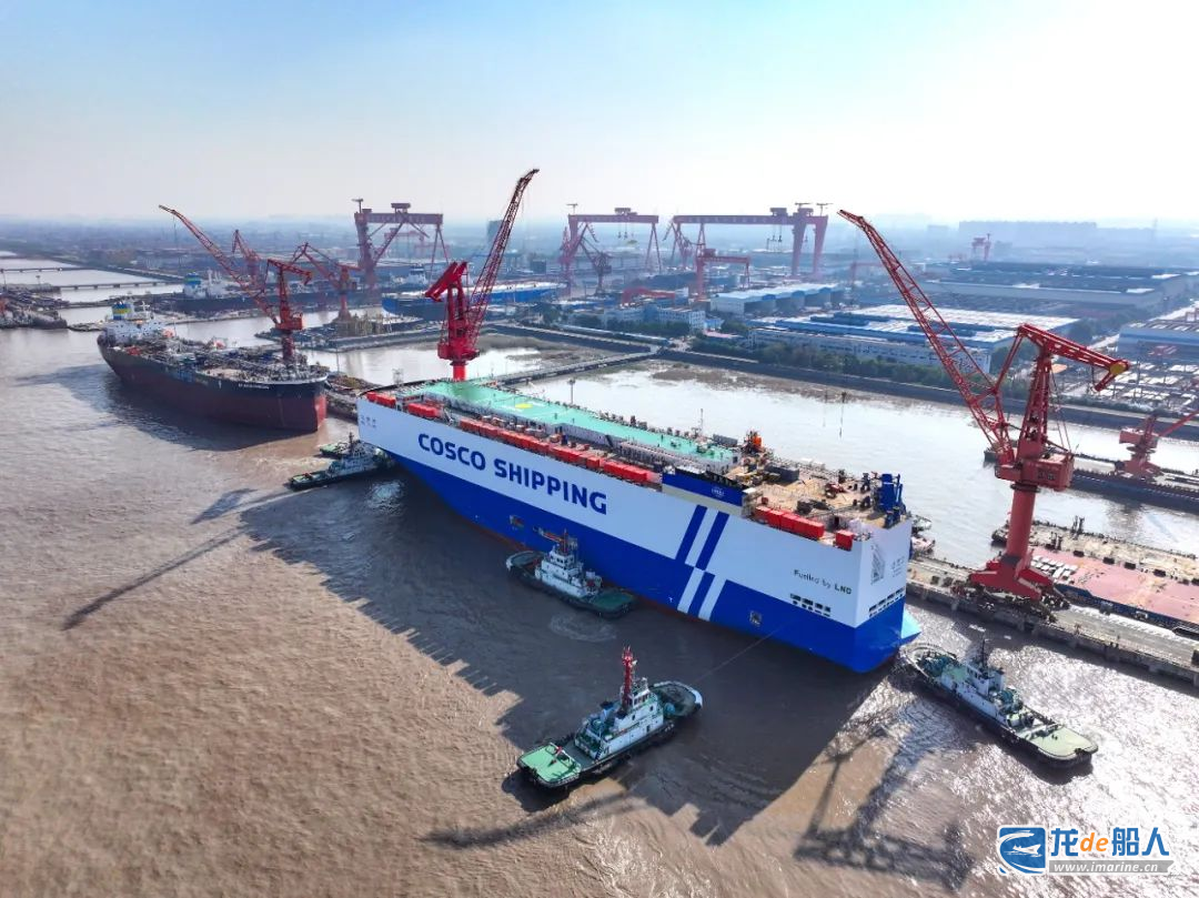 12月2日,外高桥造船首制8600车位液化天然气(LNG)双燃料动力大型PCTC顺利出坞。该新船型首次与其他3艘常规船型在一个船坞里建造,就实现了同坞同节拍生产,达成船坞周期100天既定目标,即下坞至起浮50天、起浮至出坞50天。