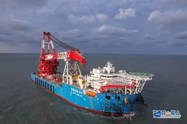同时,该船船艉设置一台5000吨级起重机,全回转起重能力达3500吨,主钩起升高度可达甲板以上130米,定员150人,各方面性能均达到国内领先水平,可满足深、远海大型风机基础施工、海上升压站吊装,兼顾海洋石油工程、跨海大桥等海洋工程施工作业。