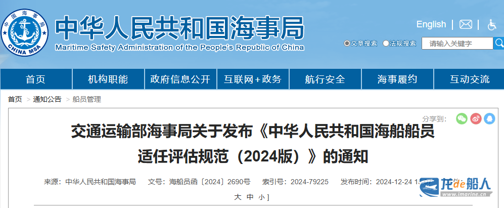 二、自2025年7月1日开始,各级海事管理机构按照《评估规范(2024版)》要求组织开展适任评估工作。