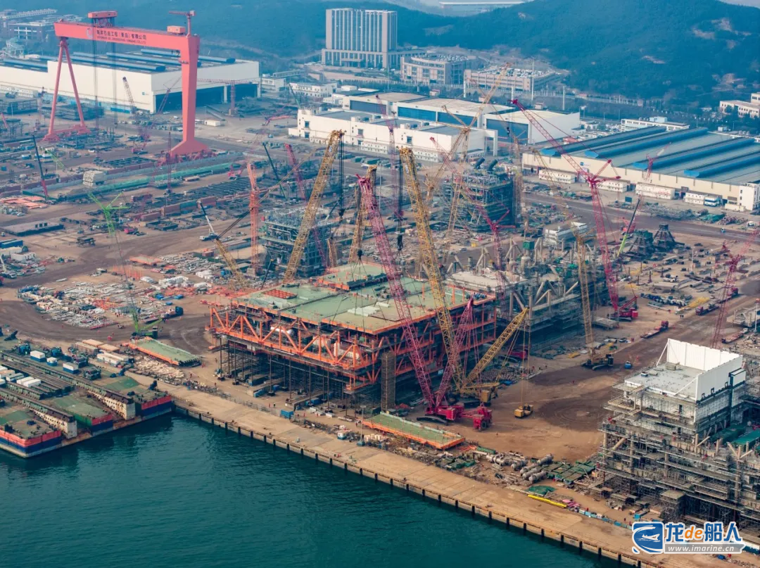 面临工期、场地资源紧张和物料供应短缺等困难,项目团队采用“非滑道区预总装,二次移位至滑道区继续总装”模式,并自主开发SPMT(自行式模块化运输车)曲线二次移位新工艺突破滑道限制,保障项目顺利总装。