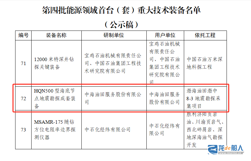 日前,国家能源局公告2025年第1号公布了第四批能源领域首台(套)重大技术装备名单,“海脉”HQN500型海底节点地震勘探成套装备成功入选。这是继“海经”两次入选我国能源领域首台(套)重大技术装备名单后,中海油服自主研发地震勘探装备的又一次入选,有力证明了“海脉”在我国油气资源的储备和产量提升中发挥了重要作用,为维护国家能源安全提供了坚实的保障。