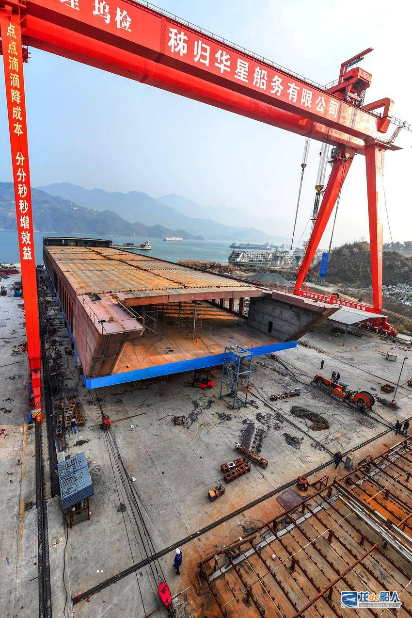 目前,该船主船体完工80%,预计今年投入运营,运营后将成为长江上游运力最大的滚装运输船舶,助力三峡库区滚装运输保障能力再上新台阶。