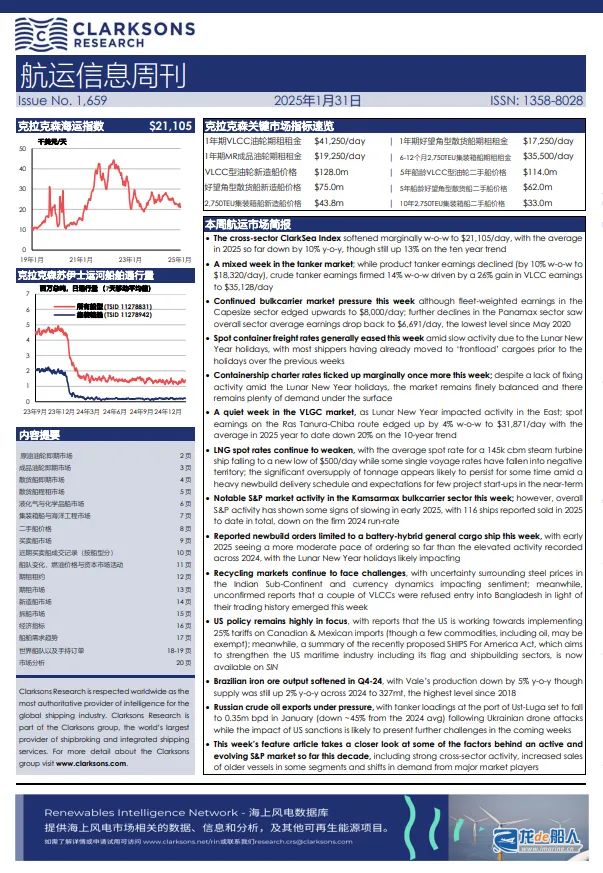 2月5日,克拉克森研究发布《航运信息周刊》报告。