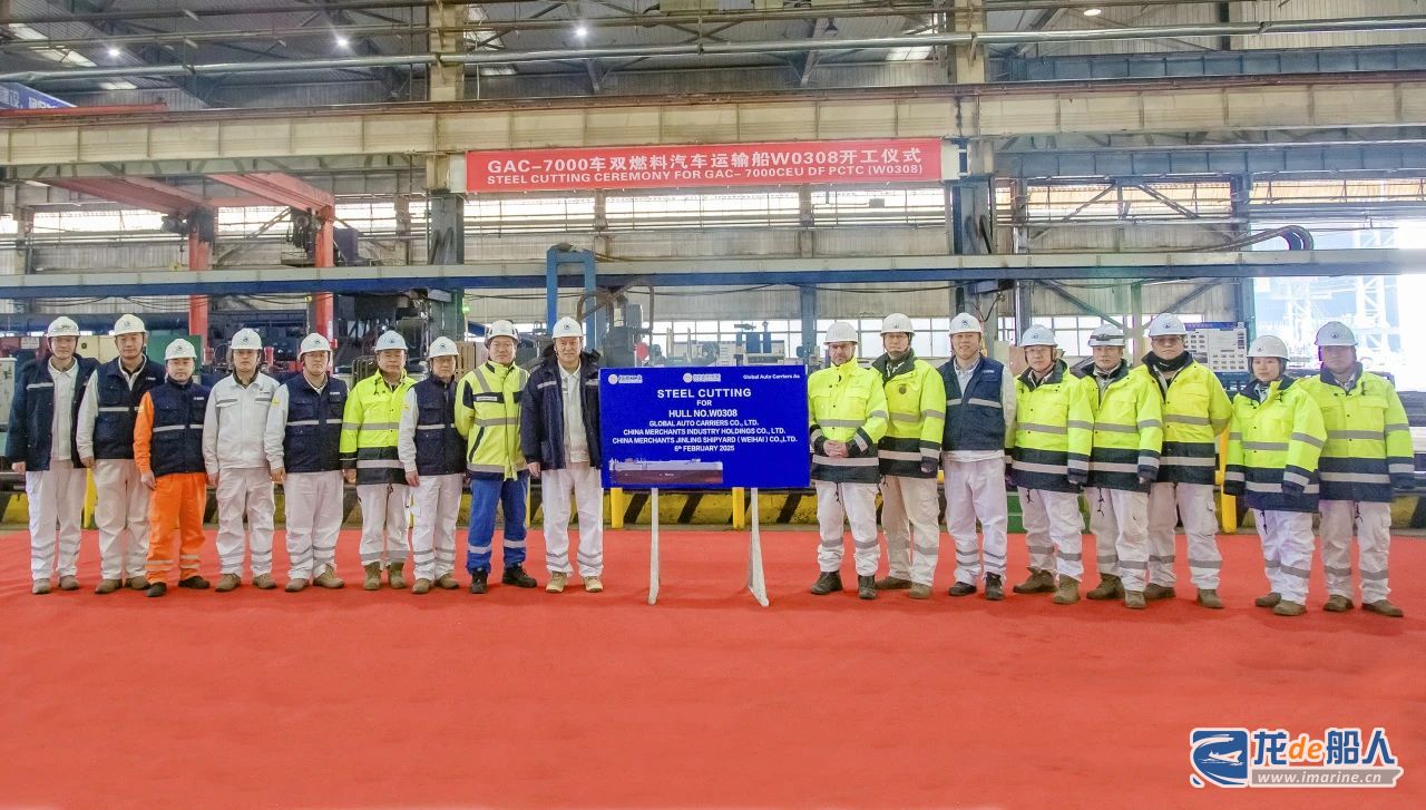 2月6日,招商工业威海金陵为挪威GAC船东建造的7000车双燃料汽车运输船3号船(W0308项目)开工。