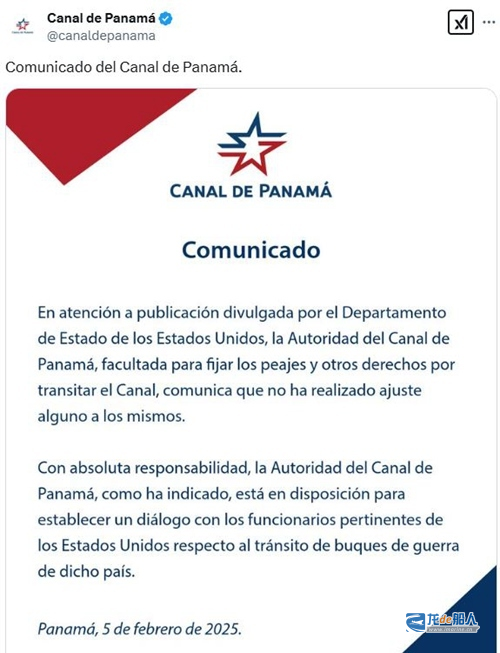 巴拿马运河管理局在声明中否认了美国国务院当日早些时候所说的“美国政府船只现在可免费通过巴拿马运河”的内容,表示相关资费没有任何调整。