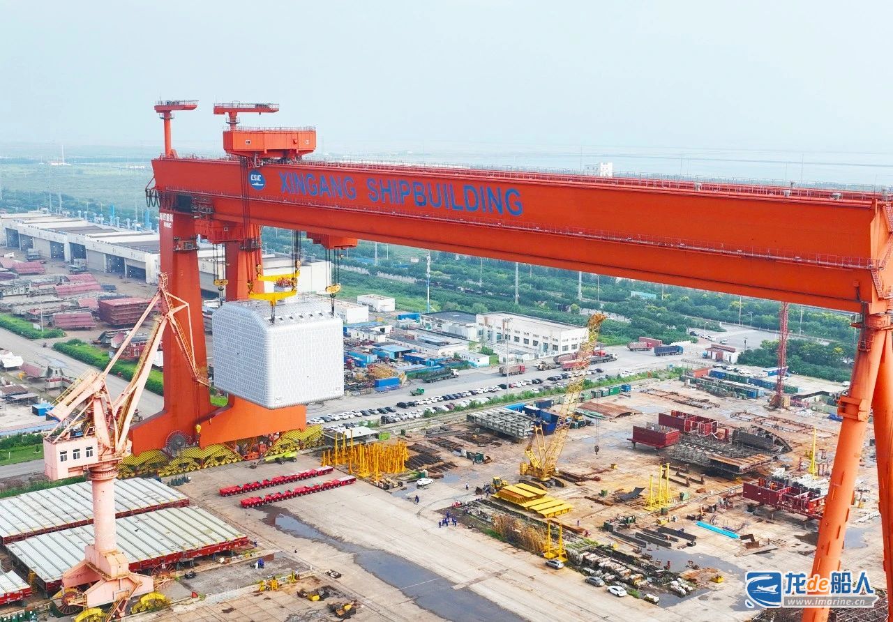 2月11日,中船天津为MSC地中海航运建造的C16K-14号船顺利完成B型LNG燃料舱双车联吊上船安装工作。