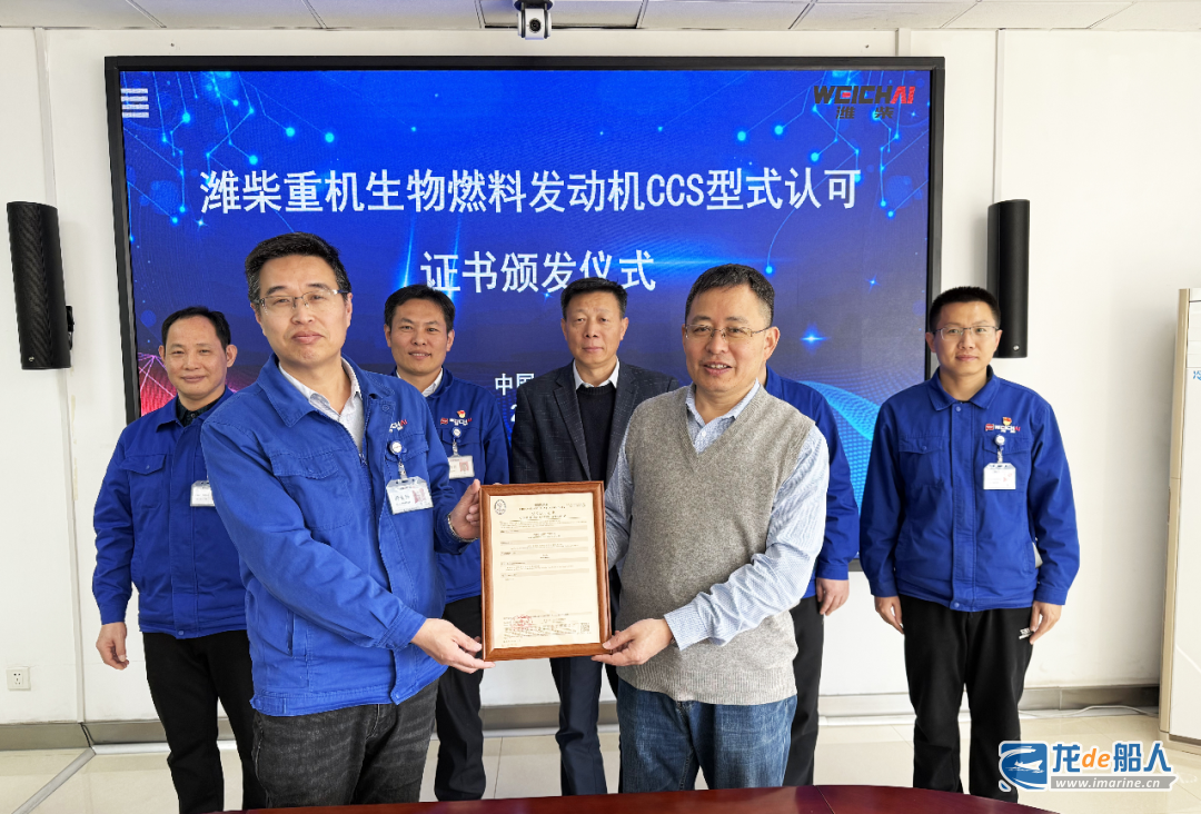 2月20日,中国船级社(CCS)向潍柴重机股份有限公司颁发了WH25、170 B100生物柴油船用发动机型式认可证书。