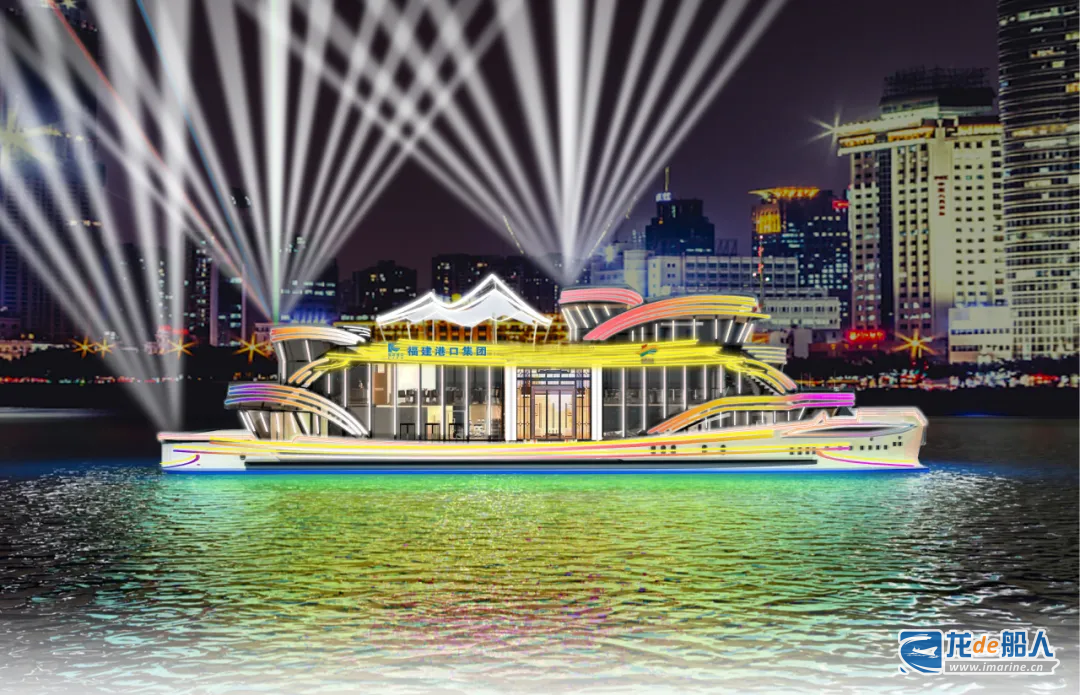 作为国内首艘全通透观光海上旅游电船,该游船最大船长46.82米,型宽15米,造型上巧妙融入了白色山峰和闽南建筑风格,上层建筑外围壁均为360度全透观光落地玻璃幕墙,夜间搭配动态灯光系统,造型美观通透,科技感十足。