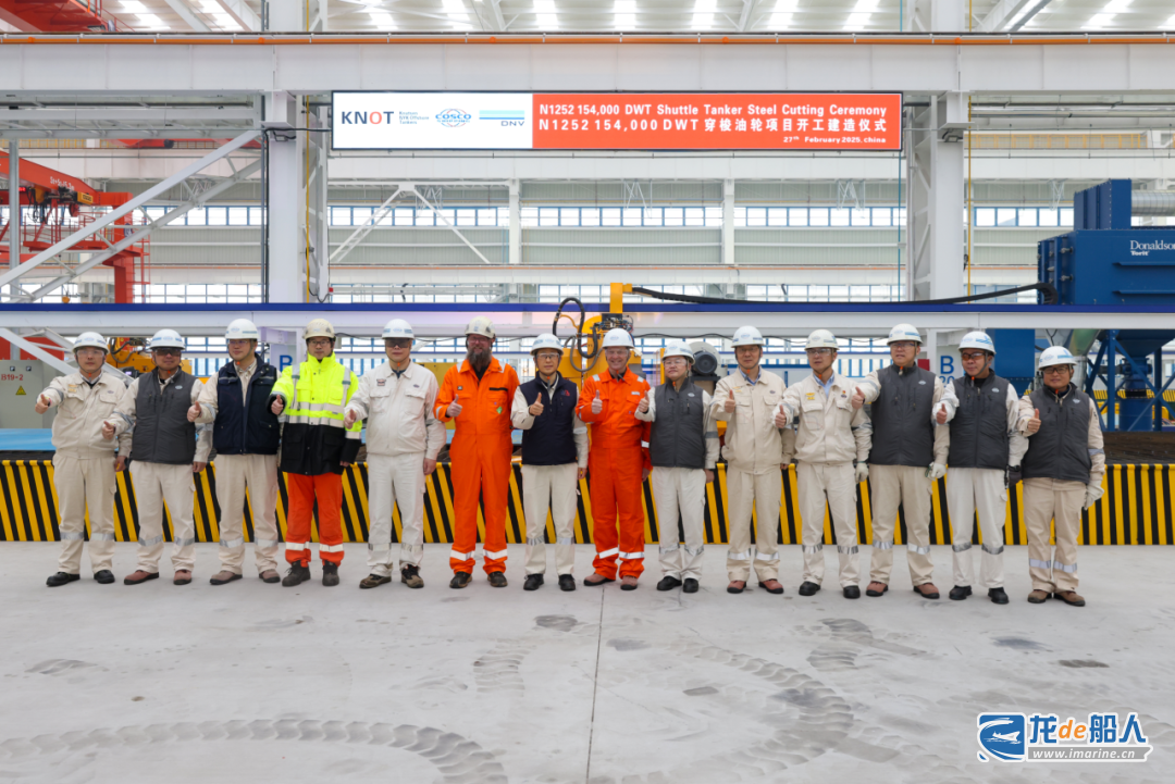 2月27日,启东中远海运海工承建的15.4万DWT穿梭油轮N1252项目切板开工仪式在分段工区新内业车间隆重举行。