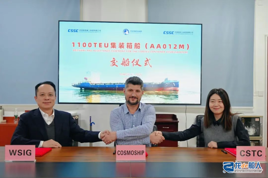3月4日,由中船集团武昌造船为希腊COSMOSHIP建造的1100TEU集装箱船2号船 (系列1100TEU集装箱船6号船)成功交付,这也是继2024年12月30日为该船东交付1100TEU集装箱船首制船后的又一力作,标志着该批次1100TEU集装箱船系列船6艘船完美收官。