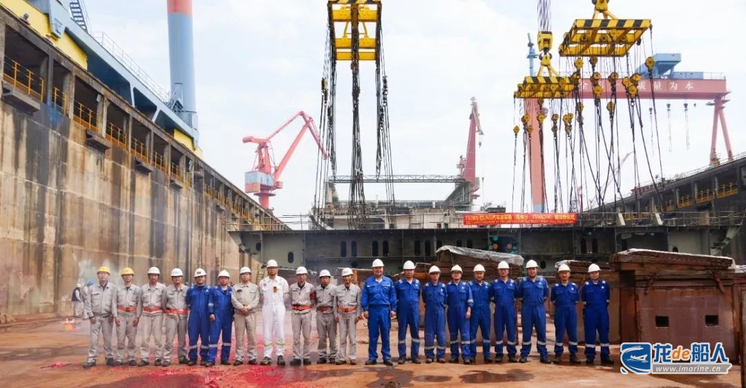 3月15日下午,厦船重工承建的日本三德船舶株式会社7500车LNG双燃料汽车滚装船系列3号船(XSI463M)铺龙骨仪式在厦船重工举行。