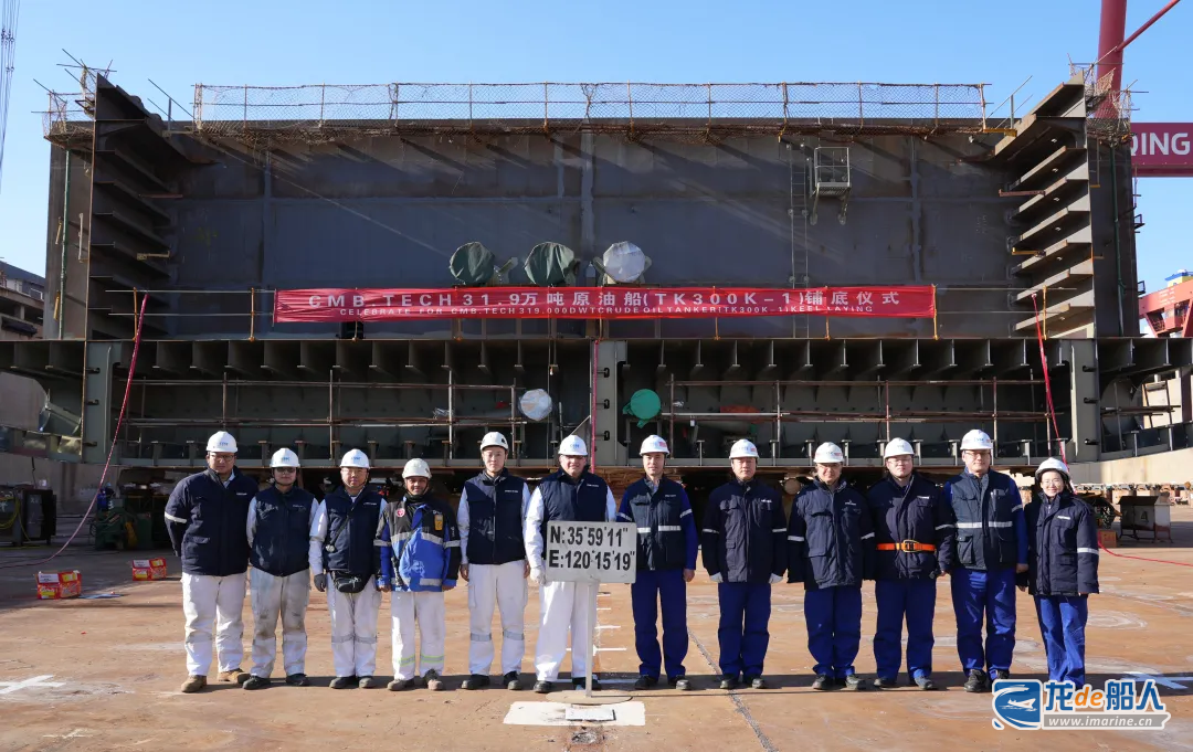 3月18日,中船集团北海造船为比利时CMB.TECH公司建造的31.9万吨超大型原油船(VLCC)首制船在1号造船坞内举行铺底仪式,较年度计划提前7天,标志着该船正式进入合拢搭载新阶段,为后续建造奠定了坚实基础。