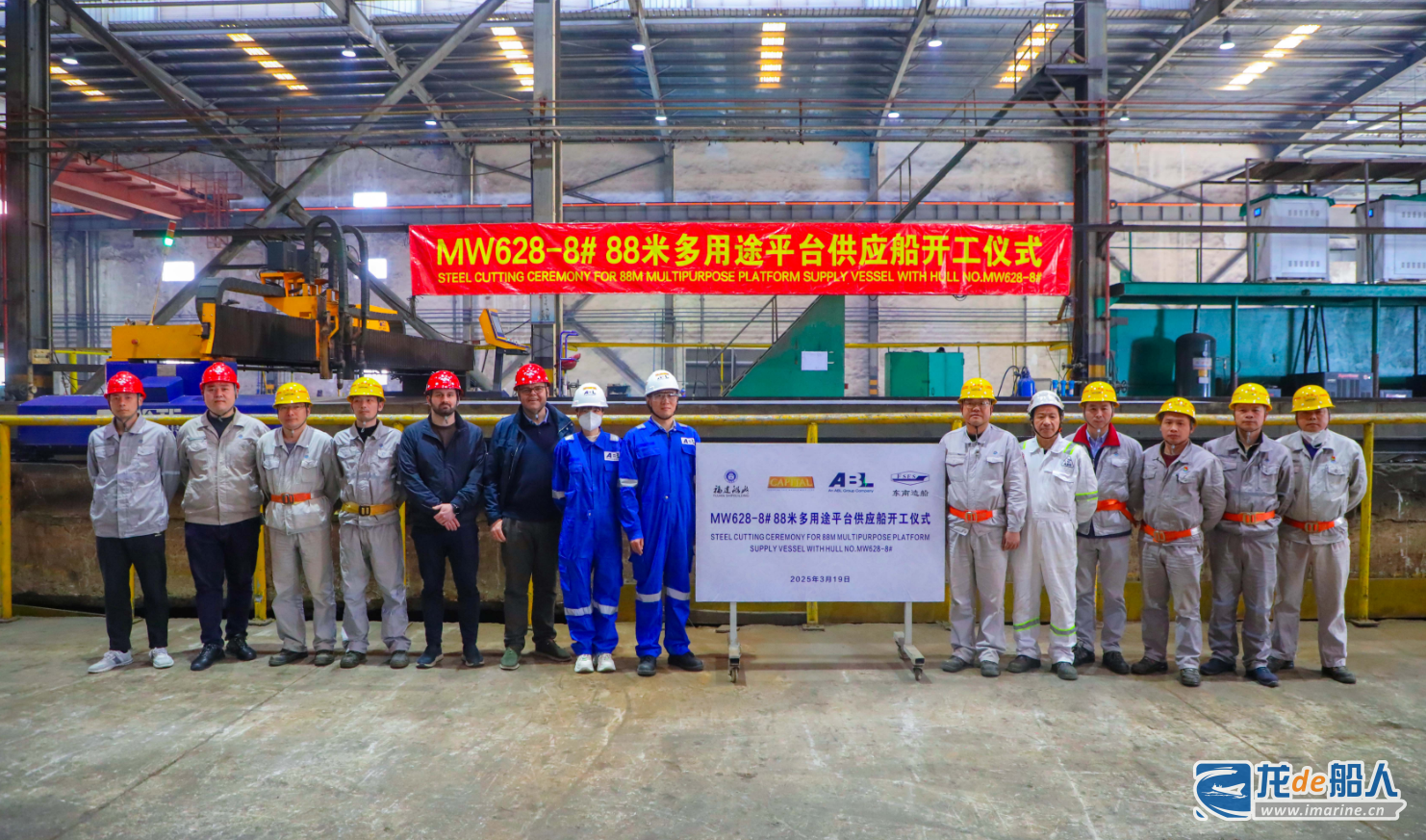 3月19日,福建船政旗下东南造船建造的88米多用途平台供应船(MW628-8)顺利开工。