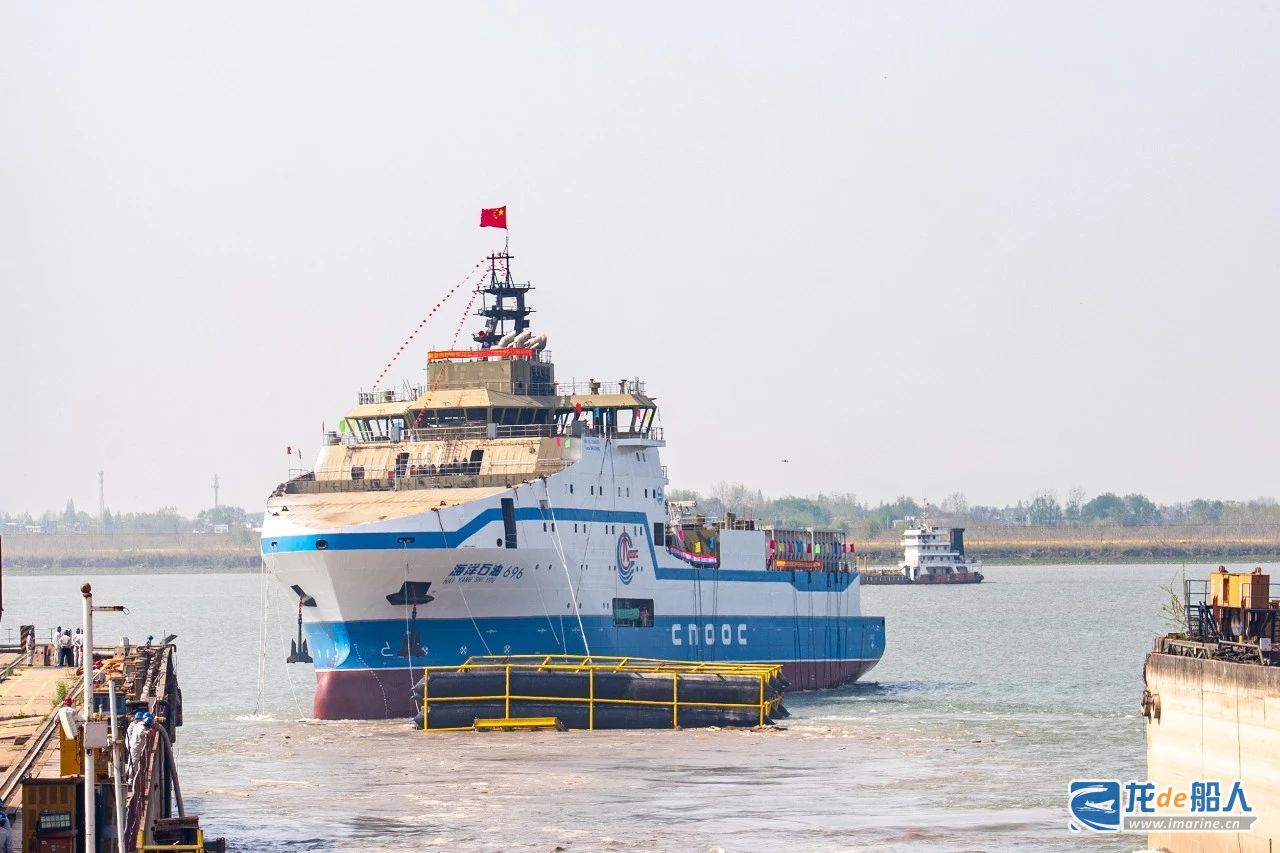 4月3日,我国首艘集成式大型压裂船“海洋石油696”从船厂船台缓缓滑入长江,标志着压裂船结束船台建造,实现机械完工,进入下水调试新阶段。