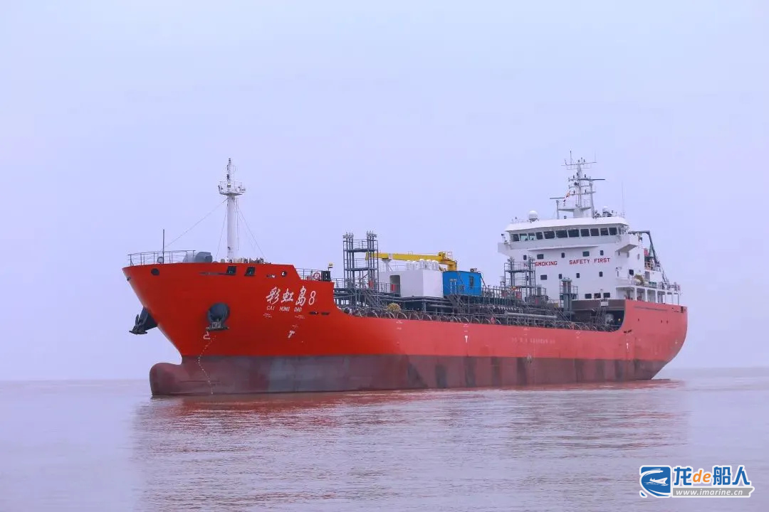 “彩虹岛8”轮是总长119.88米、型宽18米,型深10.4米的新型化学品船,配备双相不锈钢货舱,兼具卓越耐腐蚀性与结构强度,可安全承运酸类、碱类、溶剂类等多种高附加值化学品。
