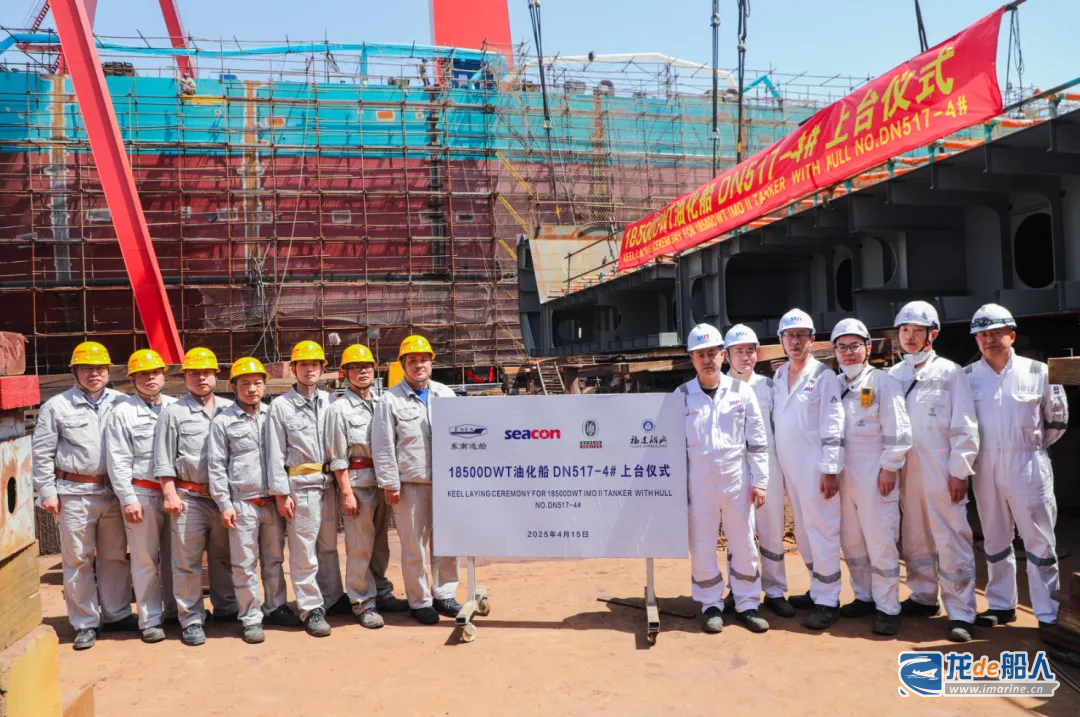 4月15日,福建船政旗下东南造船建造的18500DWT油化船(DN517-4)顺利上船台。
