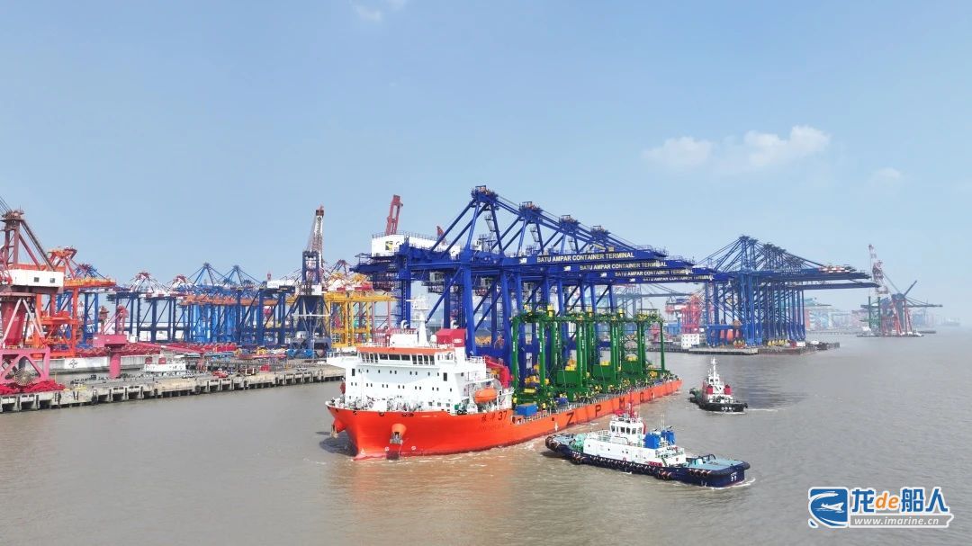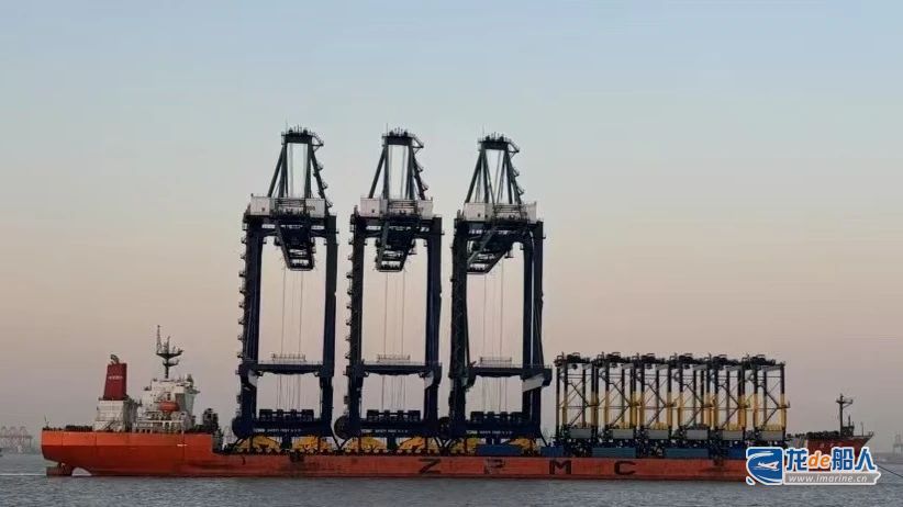 4月15日,“振华31”轮装载着深圳盐田港3台自动化双小车岸桥、6 台轮胎吊,从振华长兴分公司码头启航,前往用户码头。