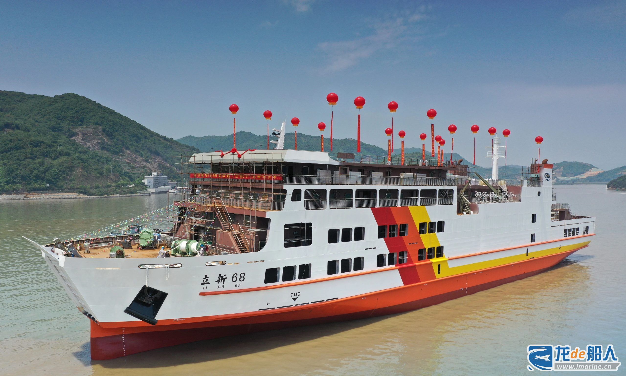 4月30日,立新船舶为印尼船东PT.MUNIC LINE建造第二艘108米客滚船”立新68”顺利下水。