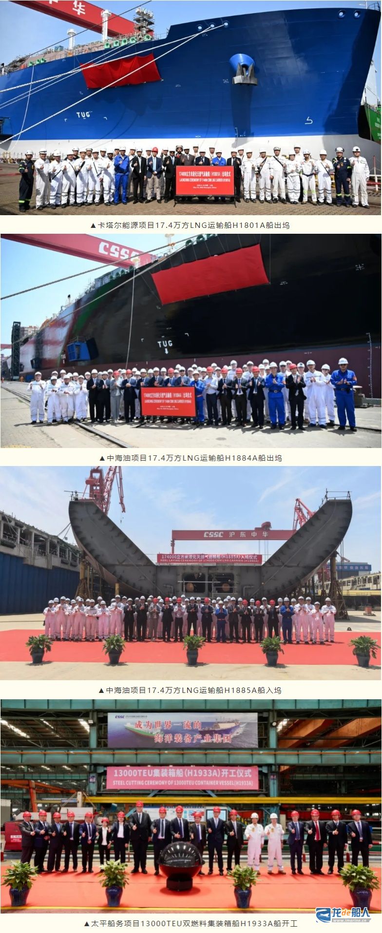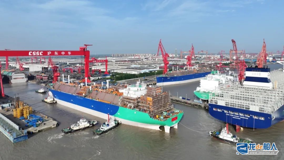 5月19日,中国船舶集团有限公司旗下沪东中华造船(集团)有限公司完成1船命名、2型新船意向书签约、2船出坞、1船入坞、1船开工等7项覆盖业务全链条的关键性节点。