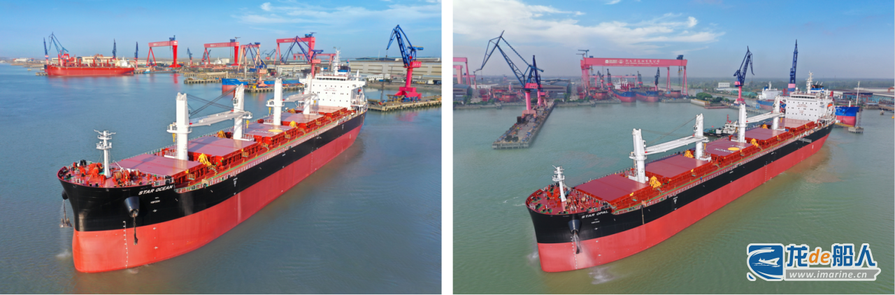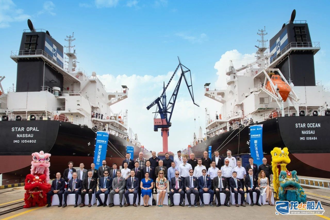 5月28日,苏美达船舶旗下新大洋造船为国际知名船东Chartworld建造的两艘皇冠 63 PLUS散货船顺利命名交付,两艘新船分别被命名为“STAR OCEAN”与“STAR OPAL”。
