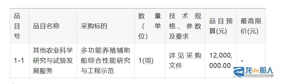 项目名称:多功能养殖辅助船综合性能研究与工程示范采购项目