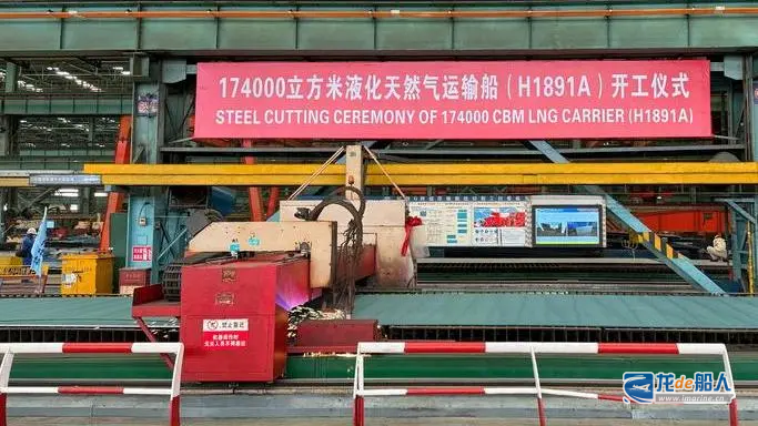 据了解,该项目共建造12艘17.4万立方米LNG运输船,分两期实施,每期各建造6艘。目前,一期项目首制船、二号船已分别提前5个月、8个月交付运营;一期项目三号船货舱已完成施工,正靠泊码头进行调试;一期项目四号船、五号船及二期项目一号船正靠泊码头进行设备安装测试和货舱施工;一期项目六号船、二期项目三号船已进入船坞搭载;二期项目二号船半船起浮后继续进行船坞搭载;二期项目四号船、五号船、六号船正在进行分段加工。
