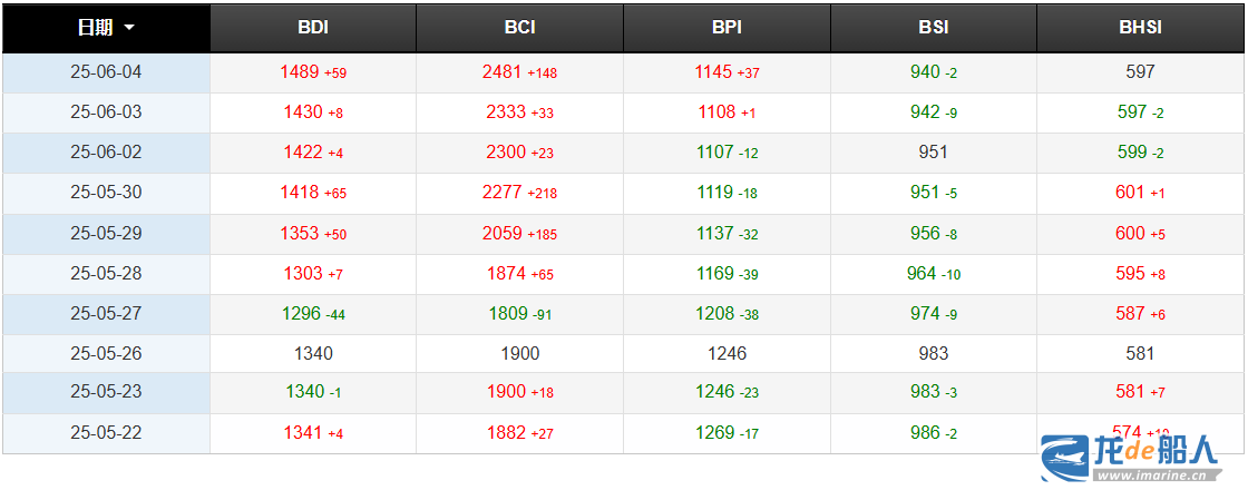 6月4日,波罗的海干散货指数(BDI)报1489点,创2025年4月4日以来新高水平,环比(较前值)涨4.13%,创3天最大涨幅,且为连续第6天上涨(含0增长)。
