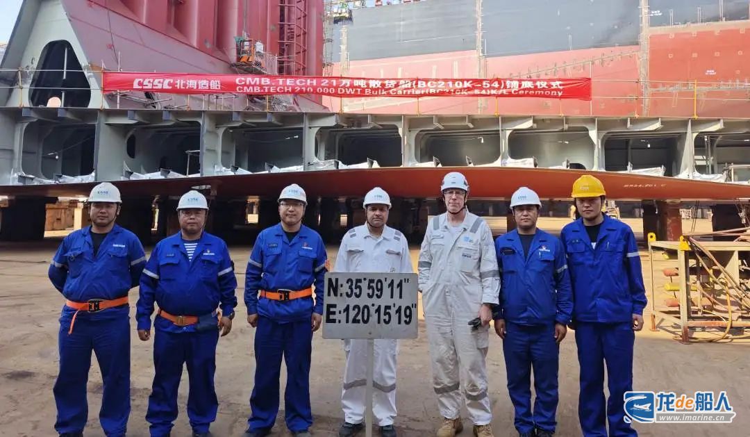 6月6日,中船集团北海造船迎来重要时刻——为国际知名航运公司CMB.TECH建造的2艘21万吨氨双燃料散货船(BC210K-45/54号船)在2号船坞成功举行铺底仪式,与该系列船的首艘21万吨氨双燃料散货船同坞建造。