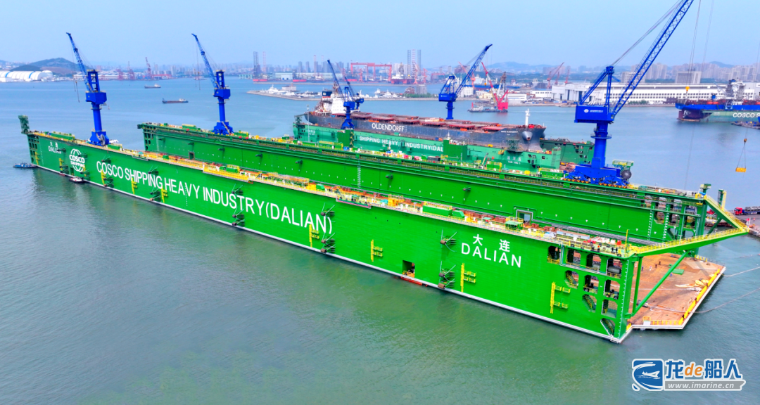 “大连”号浮船坞原为30万吨级浮船坞,为提升超大型船舶修理能力,2024年8月底,大连中远海运重工全面启动“大连”号浮船坞改造工程。经过不懈努力,于2025年5月下旬完成“大连”号升级改造,6月1日成功通过沉坞试验,具备接船能力,比计划提前一个月投产。