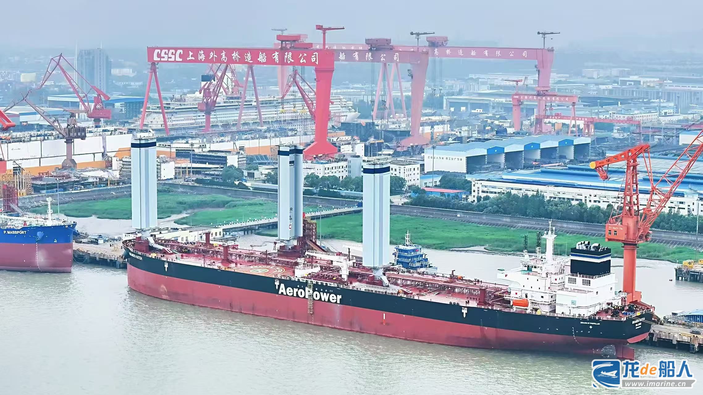 全球首艘风帆助推阿芙拉型成品油轮在外高桥造船正式命名