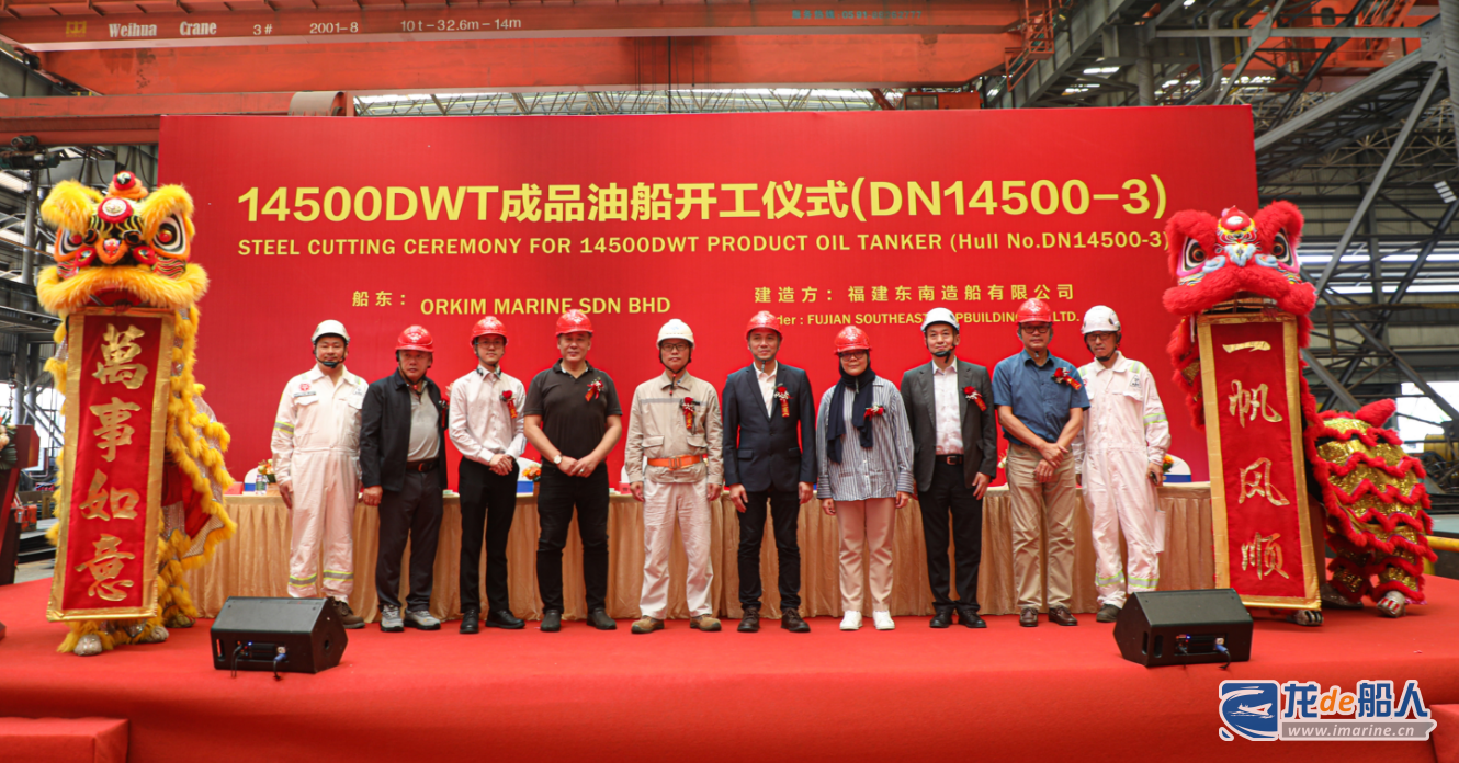 6月13日,福建船政旗下东南造船建造的14500DWT成品油船(DN14500-3)顺利开工。ORKIM MARINE SDN BHD、ABS船级社和福建船政相关领导出席开工仪式。