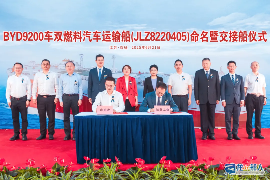 6月21日,招商工业南京金陵建造的比亚迪9200车双燃料汽车运输船“BYD XI’AN”顺利交付,这是比亚迪全球化战略布局中的又一里程碑。值得一提的是,同样备受瞩目的“BYD CHANGSHA”也即将交船。