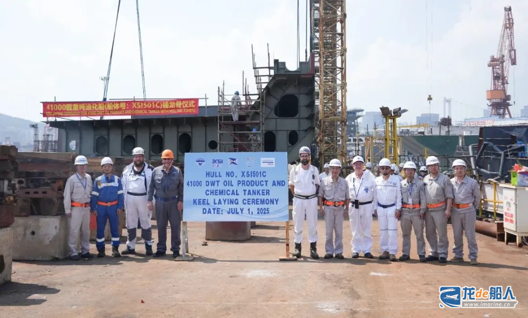 7月1日,由厦船重工为German Tanker Shipping建造的41000DWT油化船(XSI501C)举行铺龙骨仪式。