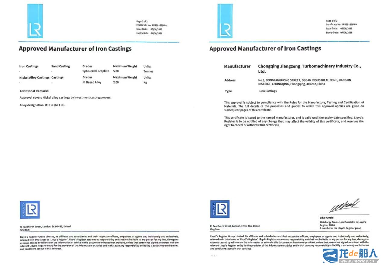 江增重工除增压器取得了DNV、RINA、CSS等八大船级社认证外,还取得了CCS、DNV、LR、BV等船级社铸件生产工厂认证,进一步增强了企业的市场竞争力。未来,江增重工将继续坚持技术创新,持续优化产品质量,巩固并扩大在行业内的领先优势。