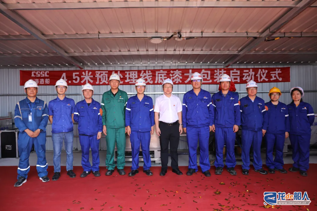 6 月 30 日,中船集团北海造船在船体预处理车间4.5米钢板预处理线举行了车间底漆大包装的启用仪式。
