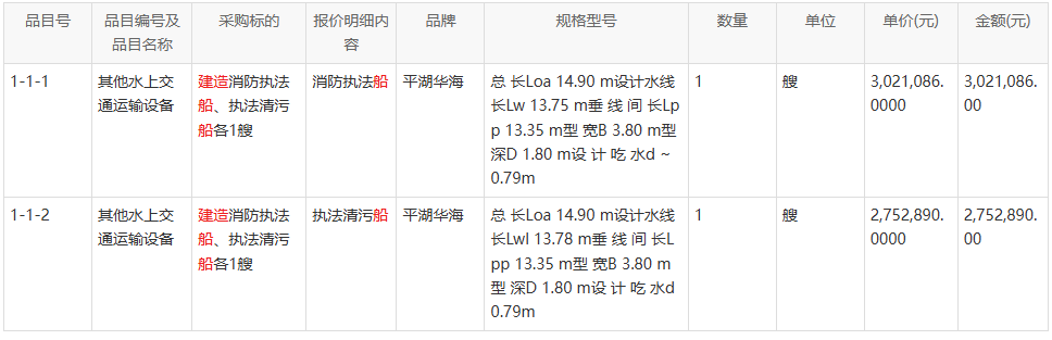 采购包1(欧厝渔港执法保障设施建设(消防执法船、执法清污船)):