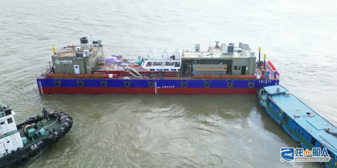 7月9日,上海振华重工集团为中交天航局建造的国内首制余水处理船“太湖之光”5号船顺利吉水。