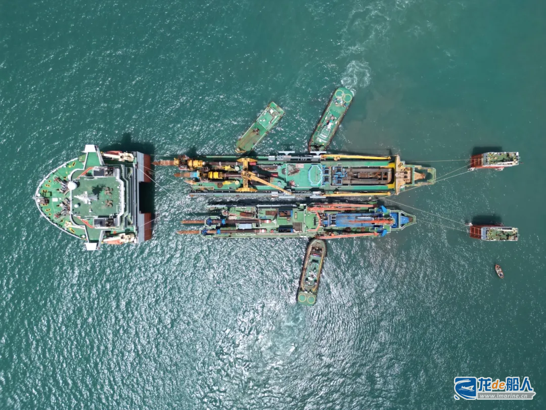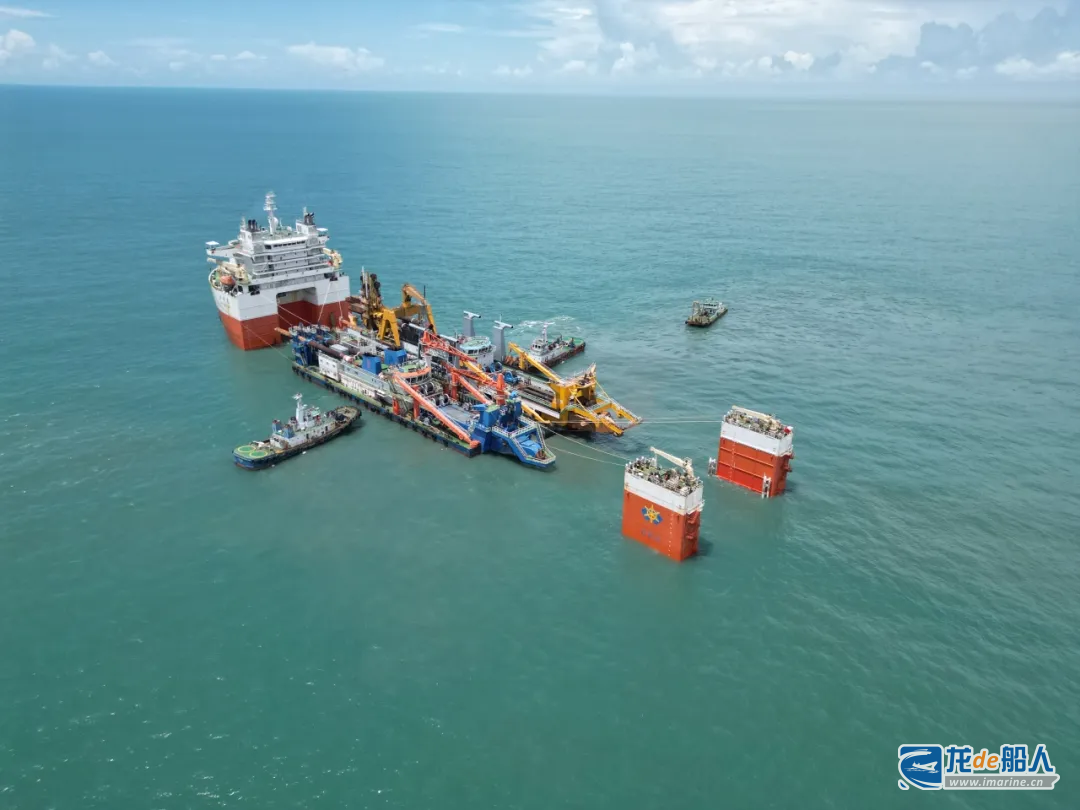 “华洋龙”本航次在孟加拉国吉大港装载2艘挖泥船、2艘锚艇运输至埃及亚历山大港,4艘船舶总吨位为14085吨。由于装货地点风浪大、流水急,装货期间正值恶劣海况周期,适合装货的窗口期极其短暂,项目团队通过科学调整货物吃水,减少货物坐墩时间,制定分三次下潜装载方案,缩短每次装载时间。最终在船岸的共同努力下,安全将4艘船舶装载到“华洋龙”的甲板位置。经过紧张有序的绑扎加固后于6月上旬启航前往卸货地埃及亚历山大港。