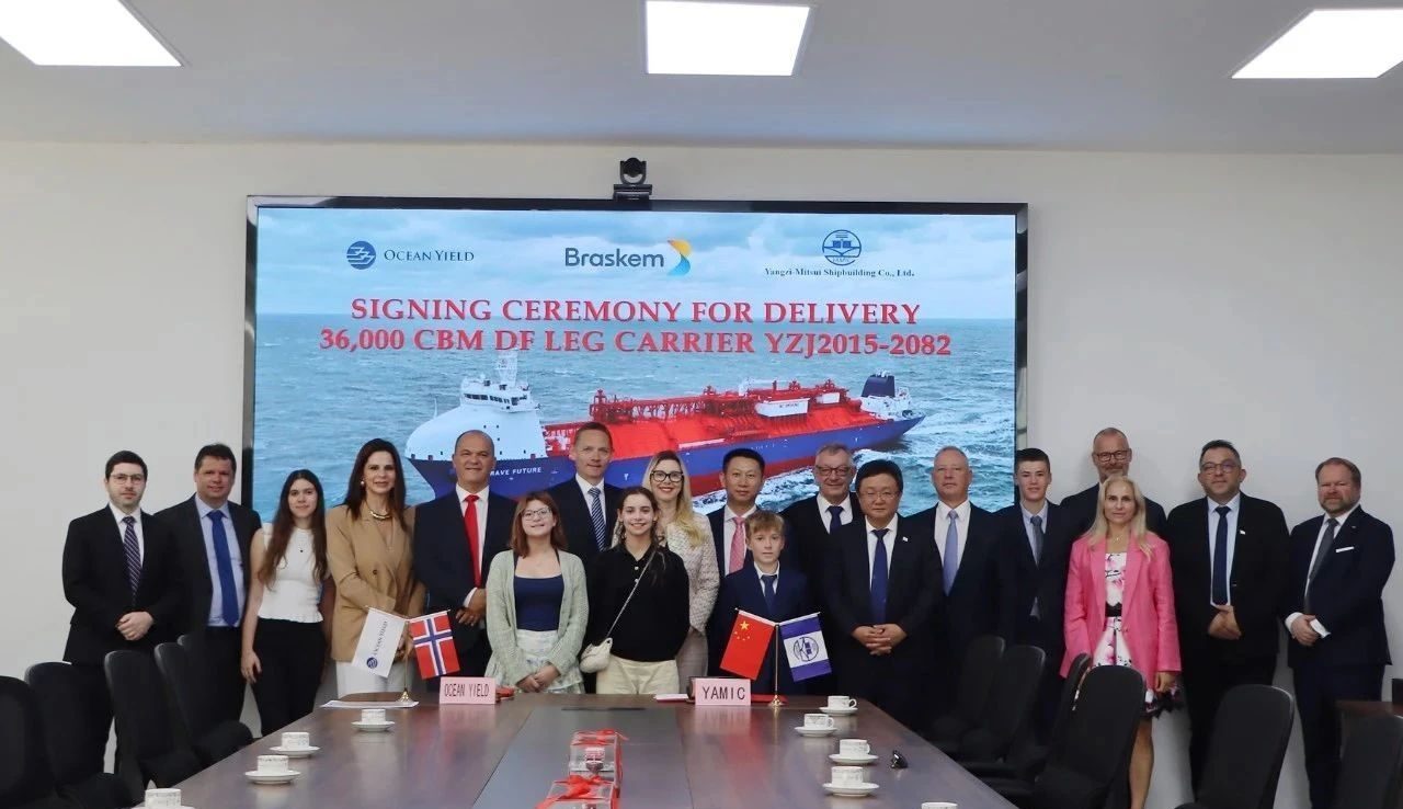7月9日,Ocean Yield COO Andreas Reklev先生及扬子江集团副总经理兼扬子三井总经理宋书明先生代表双方签署交船文件。
