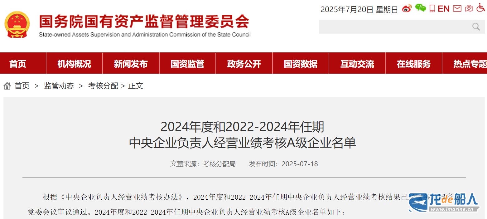 7月18日,国务院国有资产监督管理委员会在官网发布《2024年度和2022-2024年任期中央企业负责人经营业绩考核A级企业名单》。