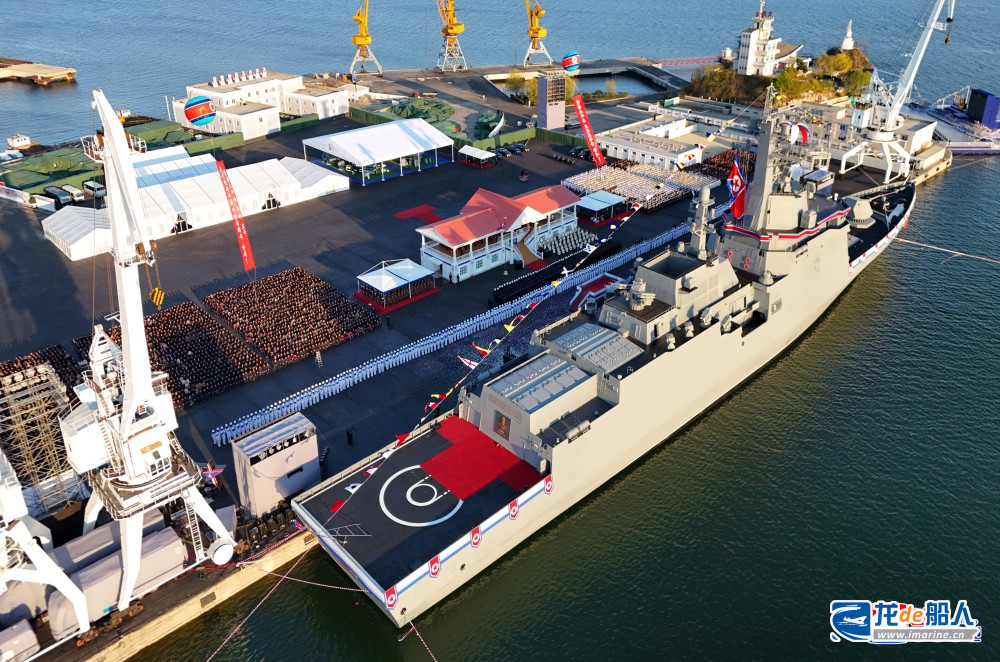 2025年4月25日,5000吨级“崔贤”级驱逐舰首舰在南浦造船厂成功下水,该舰以朝鲜开国元勋崔贤命名,预计将于2026年年初交付并投用,意味着将在短短400多天内建成